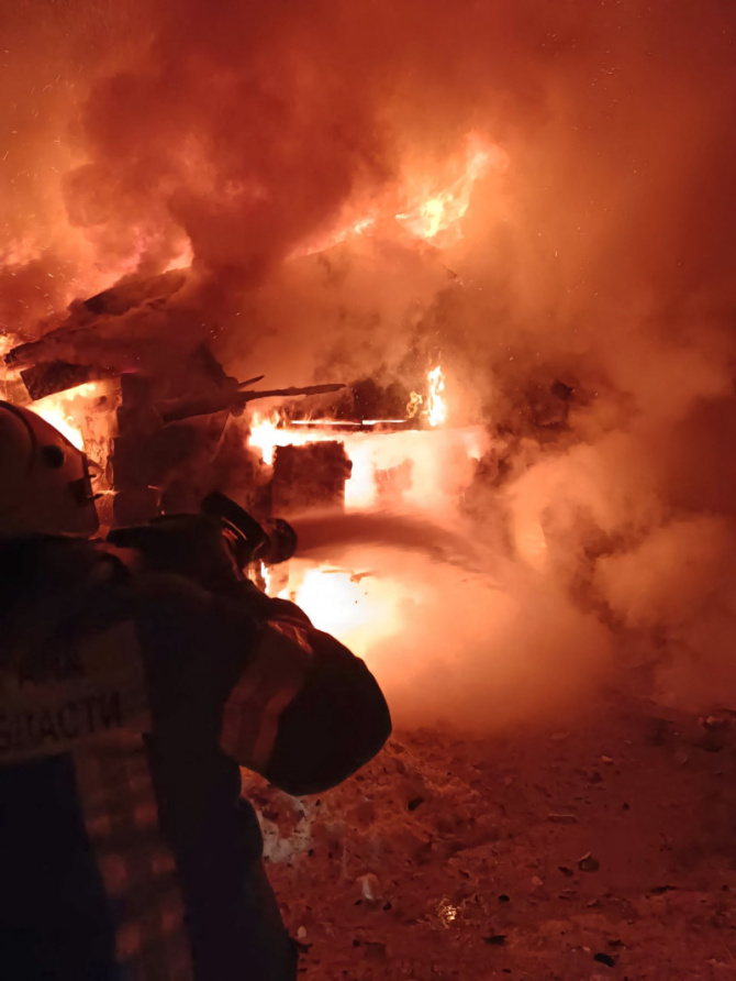 Пожару был присвоен повышенный ранг 1БИС, на место происшествия были направлены дополнительные силы. В 22:46, когда пожарные прибыли на место, повышенный ранг пожара был снят. В 00:58 пожар был полностью потушен. Пламя уничтожило деревянный сарай площадью 32 м².