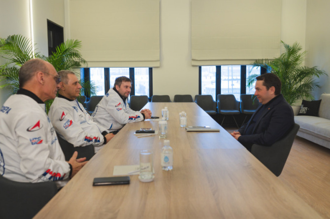 Губернатор Мурманской области Андрей Чибис провел встречу с командой стратонавтов, возглавляемой летчиком-космонавтом и Героем России Михаилом Корниенко, а также включающей в себя летчика-инструктора и члена Федерации парашютного спорта РФ Александра Лынника и инженера космической и стратосферной техники Дениса Ефремова.