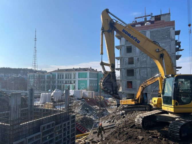 «Достаточно много времени это заняло: и согласование буровзрывных работ, и сама геометрия выемки под здание, под сети довольно-так непростая. Плюс большие перепады высот. Это всё дало о себе знать, отразилось на сроках. Основной объём уже выполнен», — отметил он.