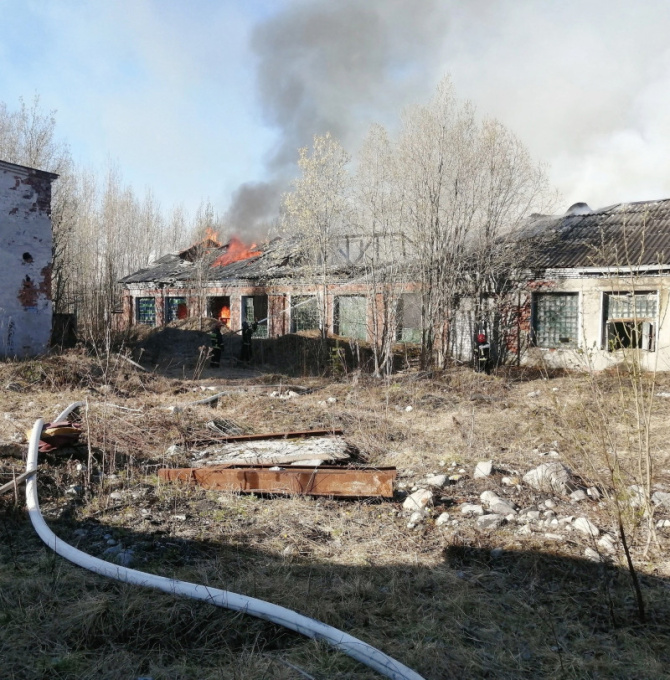 30 мая в Апатитах вспыхнул пожар на территории бывшей птицефабрики, охвативший одноэтажное здание.