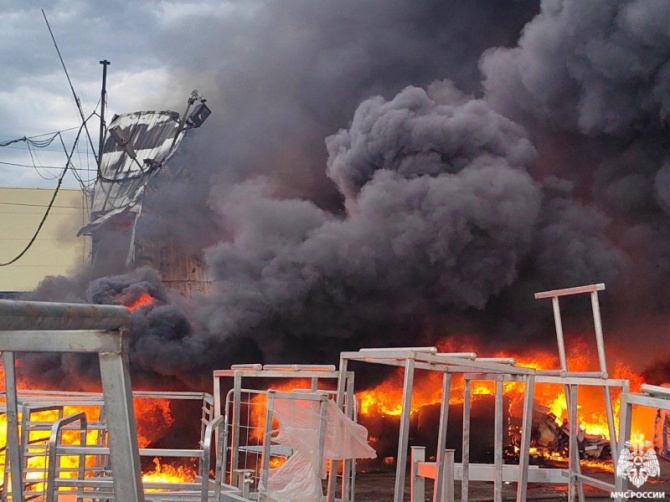 4 июня в Мурманске произошел пожар в металлическом ангаре. Сообщение о возгорании на Восточно-объездной дороге, 204г, поступило в 16:59.