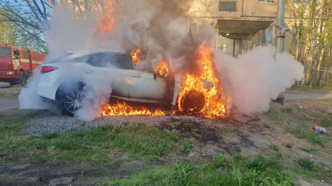7 июня в Мурманске на улице Александрова загорелся легковой автомобиль. На месте происшествия работал дежурный караул ПЧ-11 пожарной части Мурманского филиала ГПС регионального Управления по ГОЧС и ПБ.