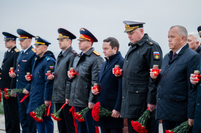 В мероприятии приняли участие представители Краснознаменного ордена Ушакова Северного флота, силовых структур, Мурманской областной думы, администрации города, молодежных и патриотических объединений, а также жители Мурманска. Они почтили память погибших минутой молчания, возложили цветы к мемориалу и зажгли «Свечи памяти».