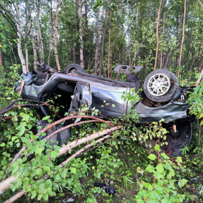 Авария произошла сегодня ночью: автомобиль ВАЗ 2113 съехал в кювет и перевернулся.