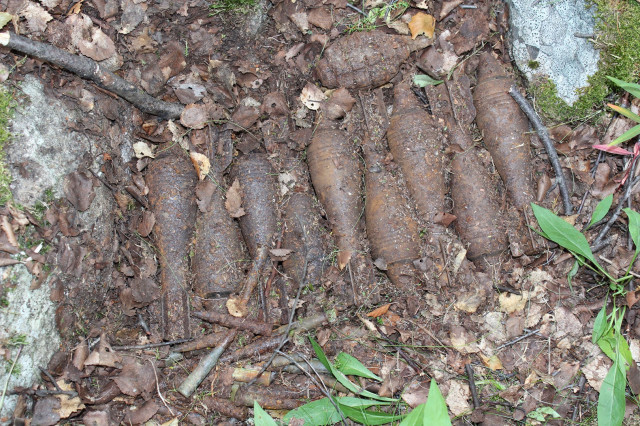 Недалеко от города Заозёрск в лесу были найдены миномётные снаряды, граната и патроны, оставшиеся со времён Великой Отечественной войны.