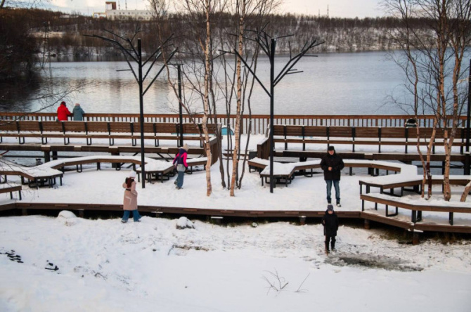 Благоустроенная территория у озера Среднее стала популярным местом отдыха для жителей Мурманска.
