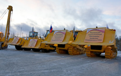 Ковдорский ГОК торжественно запустил в эксплуатацию 7 единиц новой дорожной техники: гусеничные и колесные бульдозеры «Koma…