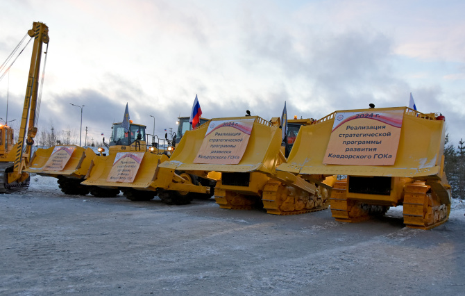 Ковдорский ГОК торжественно запустил в эксплуатацию 7 единиц новой дорожной техники: гусеничные и колесные бульдозеры «Komatsu», самоходные стреловые краны ZRT-1100 и трубоукладчик «Четра». Практически одновременно с этим в эксплуатацию запускаются две новых буровых установки: СБ-55 и «Sunward».