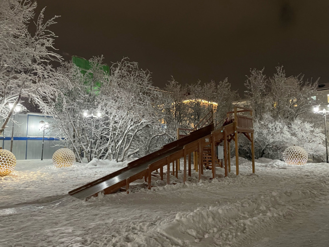 В этом году в Мурманске установлены 11 деревянных одно- и двускатных горок.