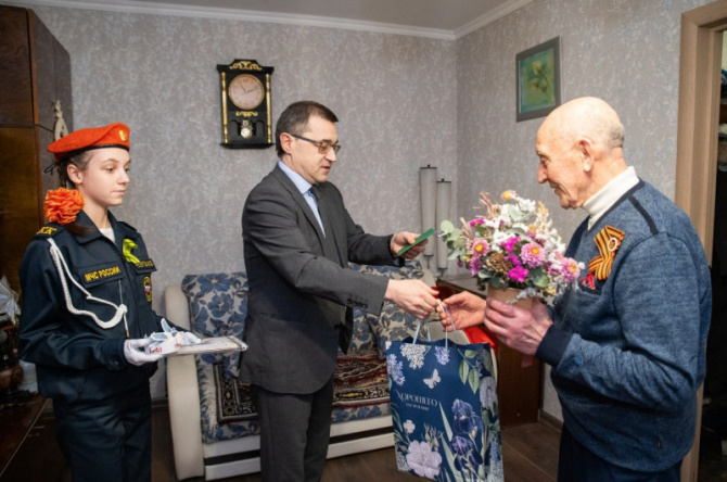 Председатель совета депутатов Мурманска Игорь Морарь вместе с ученицей Кадетской школы посетил Александра Николаевича Бартенева.