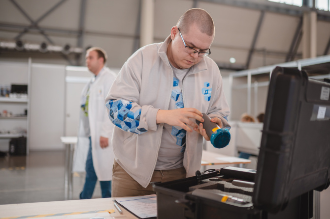 Конкурсные задания для каждой компетенции уникальные. В «Радиационном контроле» участники на скорость выполняли измерения, искали источники ионизирующие излучения в помещении и определяли их виды, а также занимались поиском радиационных загрязнений одежды персонала и проходили проверку на знание федеральных норм и правил в области использования атомной энергии и санитарных правил по радиационной безопасности.