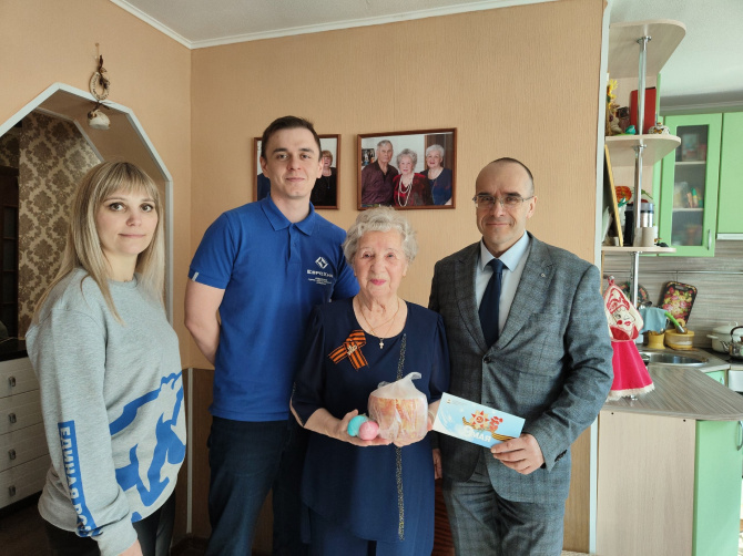 Представители Совета молодежи комбината вместе с главой Ковдорского муниципального округа Сергеем Сомовым поздравили ветеранов войны - тружеников тыла, жителей блокадного Ленинграда и несовершеннолетних узников фашистских концлагерей с приближающейся Пасхой.