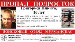 В Мурманске ведутся поиски 16-летнего Никиты Григорьева, который исчез 13 мая 2025 года. Юноша ушёл…