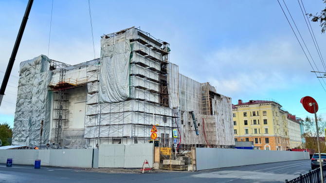 В Мурманске здание бывшего кинотеатра «Родина» после завершения реконструкции сохранит исторический облик окон. Об этом сообщила исполняющая обязанности главы регионального Минстроя Александра Карпова в ходе осмотра процесса строительных работ.