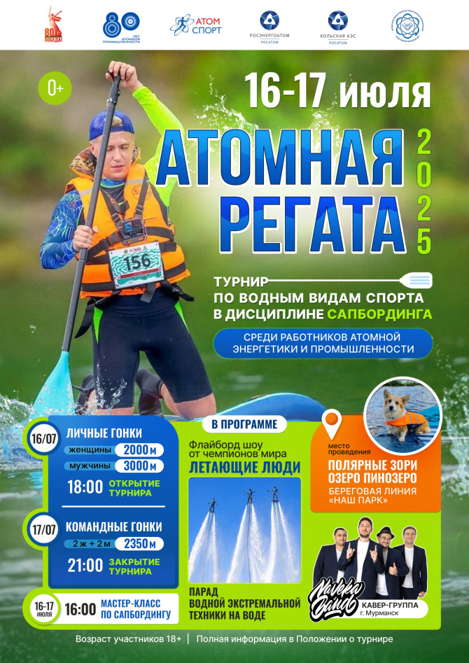 16 и 17 июля в городе-спутнике Кольской АЭС состоится «Атомная регата-2025» – турнир по водным видам спорта в дисциплине сапбординга. Мероприятие пройдет на береговой линии «Нашего парка» и станет ярким событием для всех любителей активного отдыха и экстремальных развлечений.