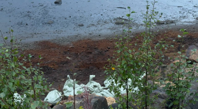 Официальных комментариев по уборке нефтепродуктов на ресурсах предприятия нет, поэтому мы руководствуемся только собственным зрением. Всего на побережье мы увидели менее 10 человек. Они собирают мазутные пятна перчатками в строительные мешки. Как планируется оттирать от мазута камни, собирать его с гальки на берегу и сколько нефтепродуктов попало в воду Кольского залива?