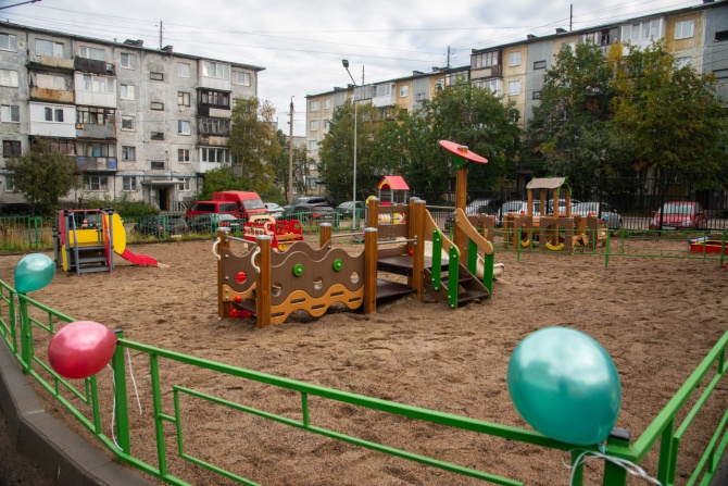 В детском саду №104 на улице Аскольдовцев в Мурманске завершилось благоустройство уличной территории. Теперь пространство для прогулок и игр разделено на тематические зоны с современным игровым и обучающим оборудованием, обустроены веранды и декоративное ограждение. Проект реализован в рамках программы «На Севере – твой проект». На церемонии открытия присутствовали глава администрации города Иван Лебедев и депутат Ирина Андреева.