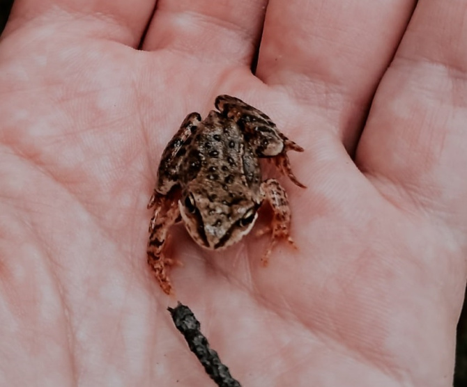 А на фотографии — малыш травяной лягушки. Жительница Кандалакши Катерина Михеева встретила его в начале сентября.