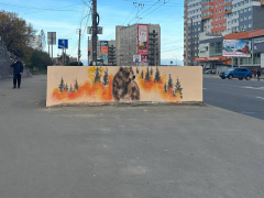 Трудились художники этой ночью. Теперь на входных группах изображены белые и бурый медведи, надпись «З…