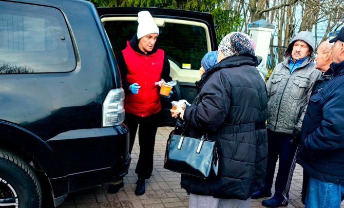 Для них волонтеры наварили 150 литров щей и 50 литров гречневого супа. Обедали северяне на нескольких специальных точках Мурманска и Колы.