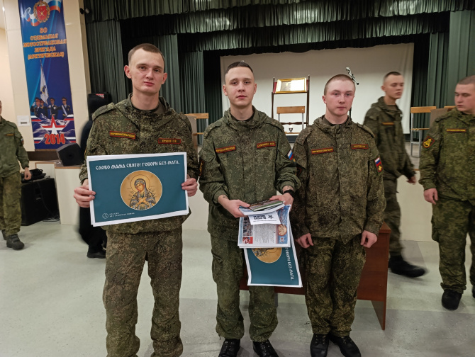В воинских частях Кандалакшского округа появились плакаты "Мат солдату не брат!" Их отпечатали волонтёры информационного центра «На Севере - верим!» на средства гранта «Православная инициатива».