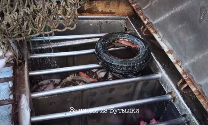 Рыбак и блогер из Мурманска Роман Федорцов продолжает рассказывать о своих рабочих буднях в соцсетях. Обычно он делится снимками и видеозаписями с морскими обитателями. На этот раз в сети ему попал совсем несъедобный объект – колесо.