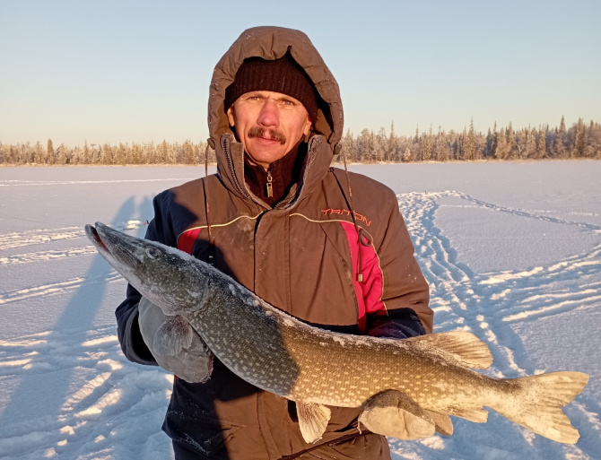 В Полярных Зорях рыбак Станислав Абрамов вернулся с зимней рыбалки с хорошим уловом. В одном из водоёмов он поймал щуку весом почти в пять килограммов.