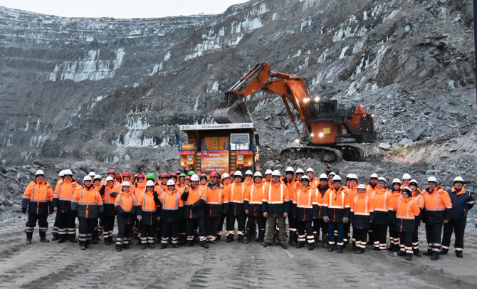Ковдорский ГОК достиг нового производственного рубежа. В карьере магнетит-апатитовых руд горняки добыли 800-миллионную тонну руды с момента начала разработки месторождения. Знаковое событие отмечено торжественным митингом непосредственно в рабочем забое. Этот показатель – результат труда нескольких поколений горняков, отражающий более чем 60-летнюю историю предприятия. В мероприятии приняли участие руководство и работники комбината. С приветственным словом к коллективу обратился исполняющий обязанности генерального директора Ковдорского ГОКа Петр Михайлович Михайлов.