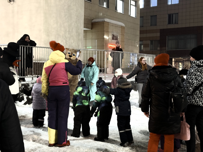 Возле детской театральной школы царила атмосфера праздника. Здесь вечером 5 декабря дети и взрослые ждали главного волшебника. Яркие огни гирлянд на большой ёлке отражались в восторженных, широко раскрытых глазах детворы. Появление Деда Мороза стало кульминацией тёплого вечера – ребята сразу окружили его, наполнив улицу счастливыми возгласами.