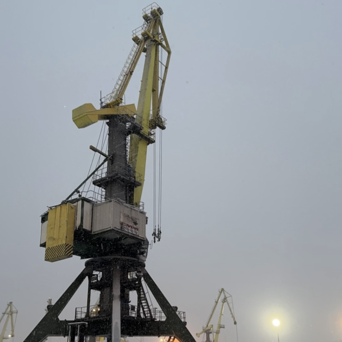 Мурманский морской торговый порт успешно завершил сложную операцию по перемещению портального крана весом 250 тонн с грузового района №1 на район №2. Работы потребовали высокой точности и были выполнены исключительно силами сотрудников предприятия, что позволило избежать значительных затрат на привлечение подрядчиков.