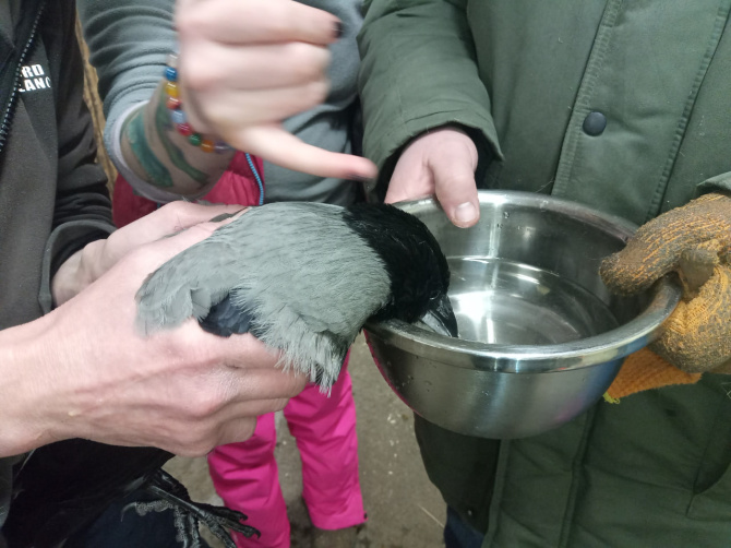Заботливые сотрудники унесли птиц в тёплое место. Попробовали их напоить и накормить, и процесс выздоровления пошёл: пернатые начали вставать на ноги и держать голову.