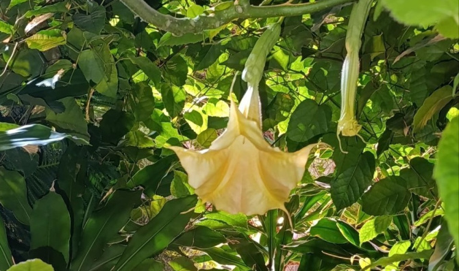 Бругмансия — род экзотических кустарников с огромными ароматными цветками-граммофонами, которые могут достигать размеров до 50 сантиметров. Это растение ещё называют ангельскими трубами. Оно славится обильным цветением, но все его части при этом ядовиты — содержат алкалоиды.