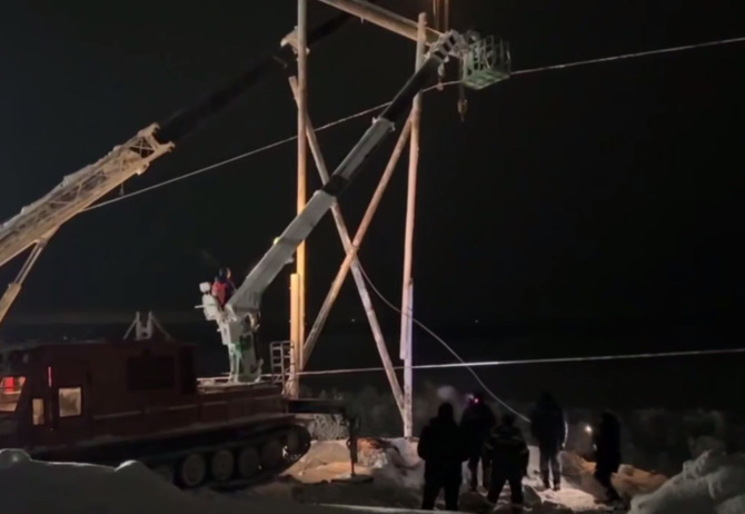 По данным на 23:00 понедельника, были установлены временные опоры ЛЭП, оставался монтаж последнего провода. Также, по словам Чибиса, на вечер 26 января без тепла оставался всего 1 дом.