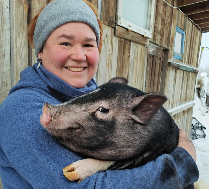 Северянин забрал животное и отвёз мини-пига Кристине Курашовой — хозяйке конного клуба «Фортуна». Теперь свинку зовут Эмми, и она нашла свой дом. А ещё новой жительнице подарили футболку, шубу и куртку.
