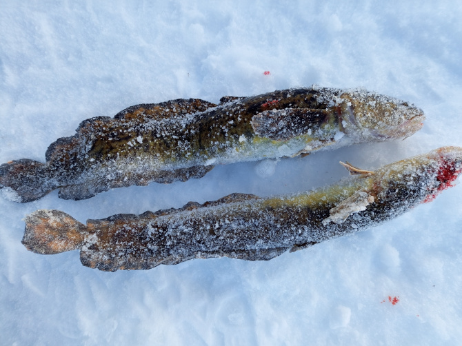 Так, например, мурманчанка Любовь Зобнова рассказала у себя на страничке в ВК о том, как прошла её рыбалка 17 февраля. Ловила рыбу она вместе с супругом в Верхнетуломском водохранилище в двадцатиградусный мороз. Скрасили поход солнечная погода и безветрие.