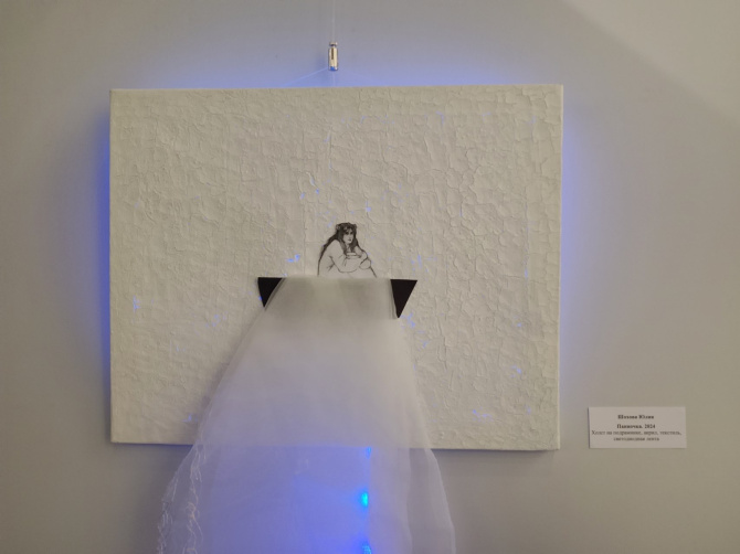 Выставка уже вызвала интерес у посетителей библиотеки. Гости подолгу рассматривают текстильные детали и необычные фактуры, обсуждают сочетание материалов, фотографируют работы со светодиодной лентой и электрикой.