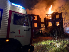 В Кольском районе сгорело сразу несколько строений. Сообщение о крупном пожаре на 49 км а/д Кола-Серебрянс…